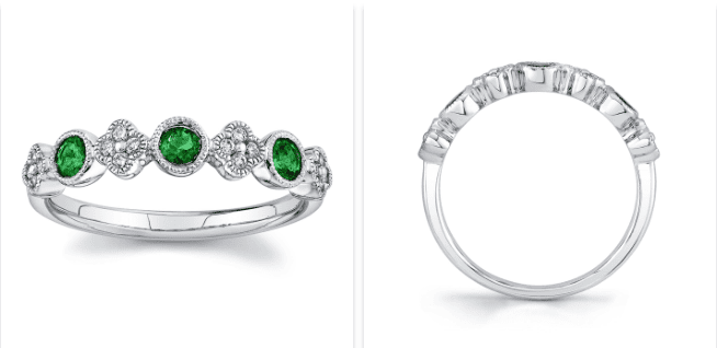 Emeralds deliver a vivid green but as a softer stone need protective settings.