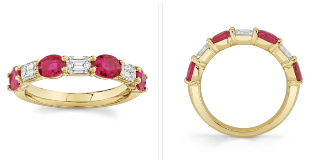 Rubies bring a rich red and match sapphire’s durability.