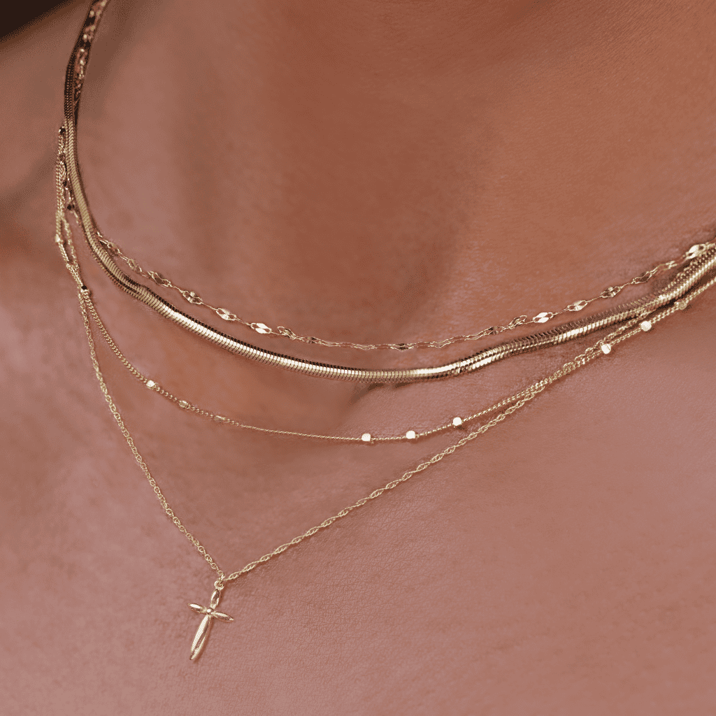 Maybe a sparkling necklace or necklace stack: